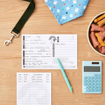- Easy-to-Write: Clear black & white font allows easy input of contact info, pet’s name, breed, sex, weight, color, age, and medical issues; reverse side captures the date, groomer details, and price