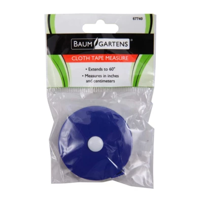 Baumgartens Tape Measure, Pack of 12 | These colorful cloth tape measures are convenient and small enough to put in your shirt pocket or in your desk tray. This cloth tape measure extends up to 60″ and retracts with the push of a button. Round plastic enclosure is 2″ in diameter in assorted colors. Measures in inches and centimeters. Small enough to go anywhere and everywhere. Lightweight and easy to use. No worries if you’re by yourself; it holds secure where you stop it. Sold as a pack of 12 tape measures in assorted colors (no color choice).