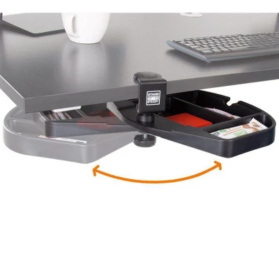 - STASH AND SWIVEL: Stand Steady’s compact desk drawer organizer rotates 360 degrees, letting you store small items like pens, markers and phones, and swing them under the desk and out of the way.