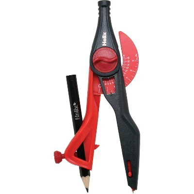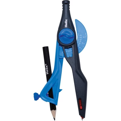 Helix Universal Locking Compass, Assorted Colors, Pack of 12 | Modern, ergonomic compass perfect for all ages! Features a twist-lock secures the legs in place for accurate circle size and guaranteed precision. Innovative Safety Tip automatically retracts when you close the compass legs, to avoid potential injuries in a bag or case. Integrated distance measuring arm is graduated in both inch and metric. Sold as a pack of 12 in assorted colors: Blue, Green, Red and Orange (no color choice).