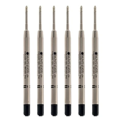Monteverde Capless Ceramic Gel black refill with a broad tip is designed to fit Parker ballpoint pens and is sold as 6 per pack. Monteverde Capless Ceramic Gel refill in black offers latest technology for smooth and comfortable writing. Refill made from low viscous ink is sold as 6 per pack and features nickel silver tube and tip with a large capacity metal refill. Black. Broad. Fits parker gel ballpoint pen. Smooth writing. 6/Pack. Medium tube packaging.