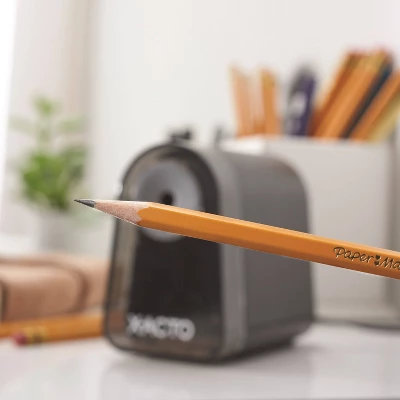 Spend less time sharpening and more time writing with the break-resistant X-ACTO® Mighty Mite® Pencil Sharpener. With the Pencil Saver® feature, this electric pencil sharpener prevents oversharpening to keep tips from breaking and frustration from setting in. A slip-resistant bottom keeps the pencil sharpener steady when in use. Finally, the SafeStart® electric motor stops when the easy-to-empty shavings bin is removed. It’s also compatible with colored pencils. Stay sharp with X-ACTO®, the #1 electric pencil sharpener brand!